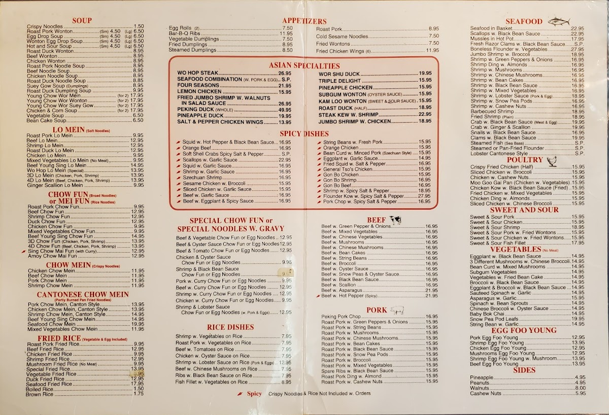Whether stopping by for a solo bite, sharing classic plates with friends, or savoring a late-night meal, Wo Hop’s menu captures the essence of neighborhood Cantonese dining in New York’s Chinatown.